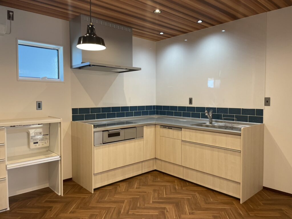 また、キッチン上のタイルは海辺を想像させるようなブルーでおしゃれですね。
