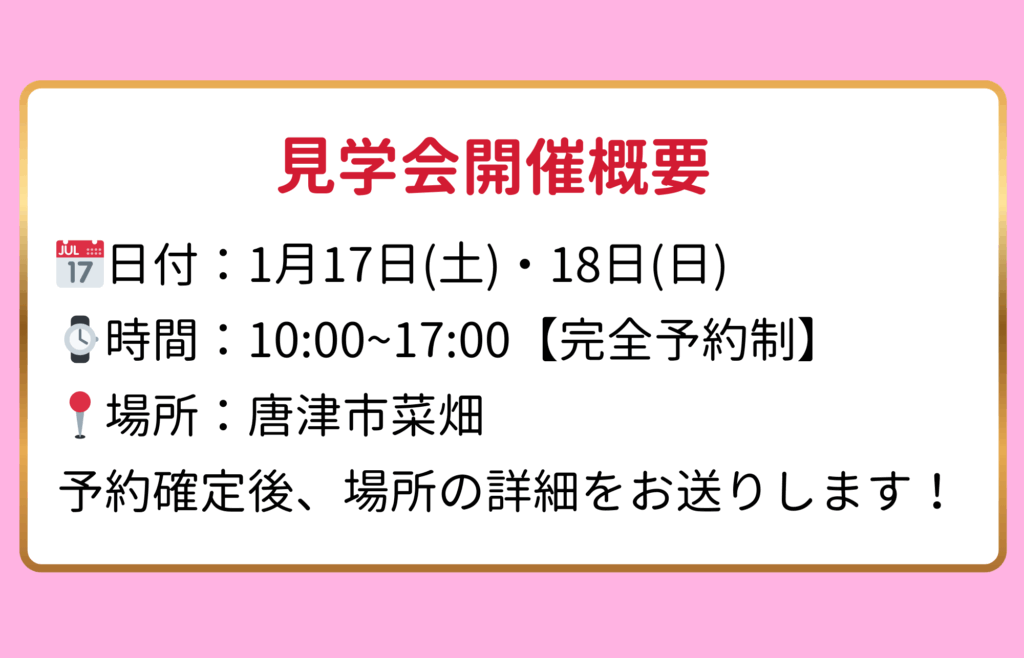 場所:唐津市菜畑(予約確定後、場所の詳細をお送りします!)