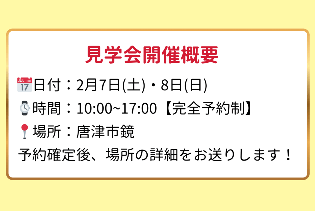 場所:唐津市鏡(予約確定後、場所の詳細をお送りします!)