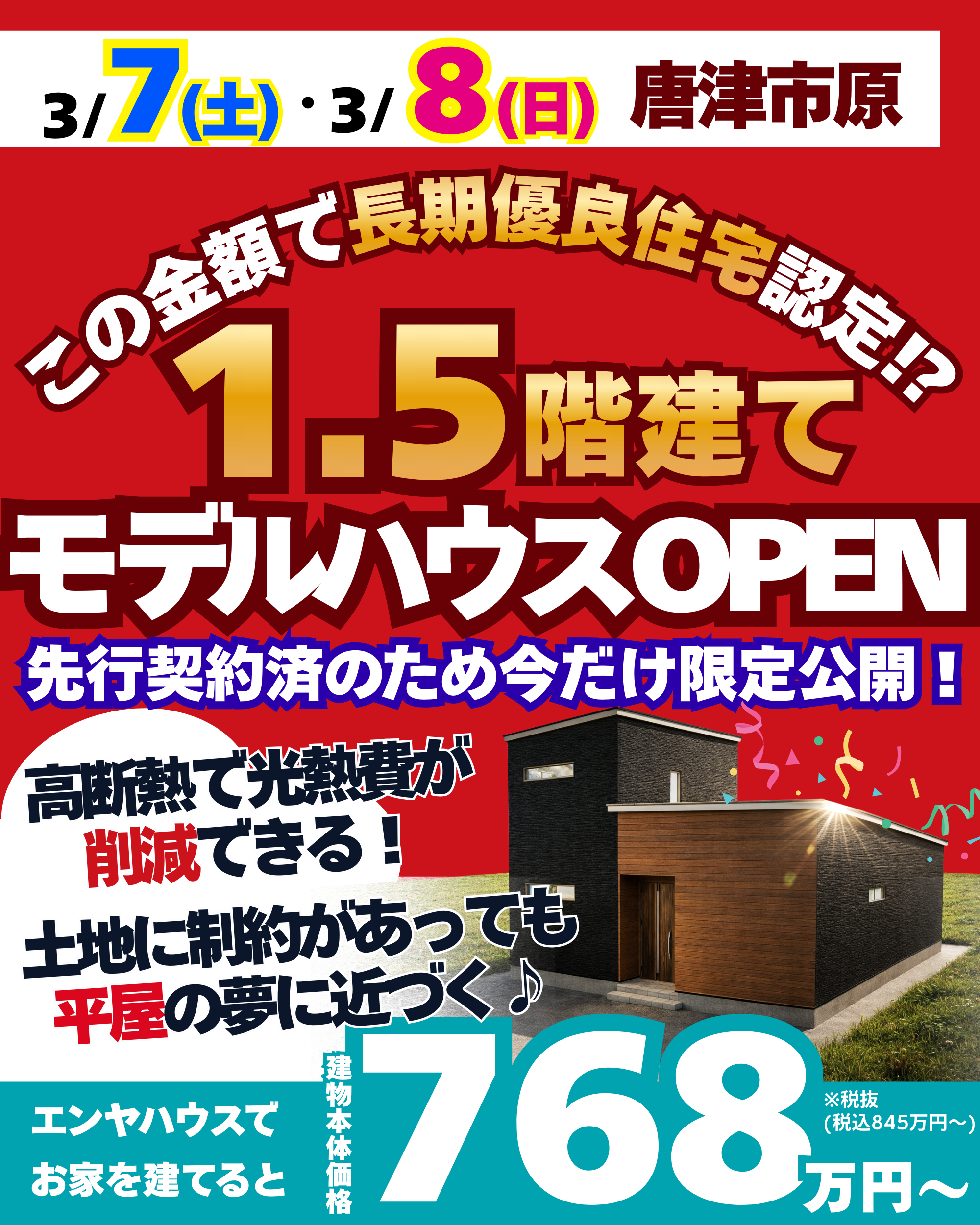 \いい家超安く!✨/ 【3/7·8】唐津市原《長期優良認定》半平屋モデルオープン! 「無理なく理想のマイホーム」 間取り自由!打合せし放題! お気軽にご相談ください😊 🏠モデル:唐津市原・伊万里市東山代 🔨建築中:唐津市久里・神田・伊万里市二里 📞0120-082-464