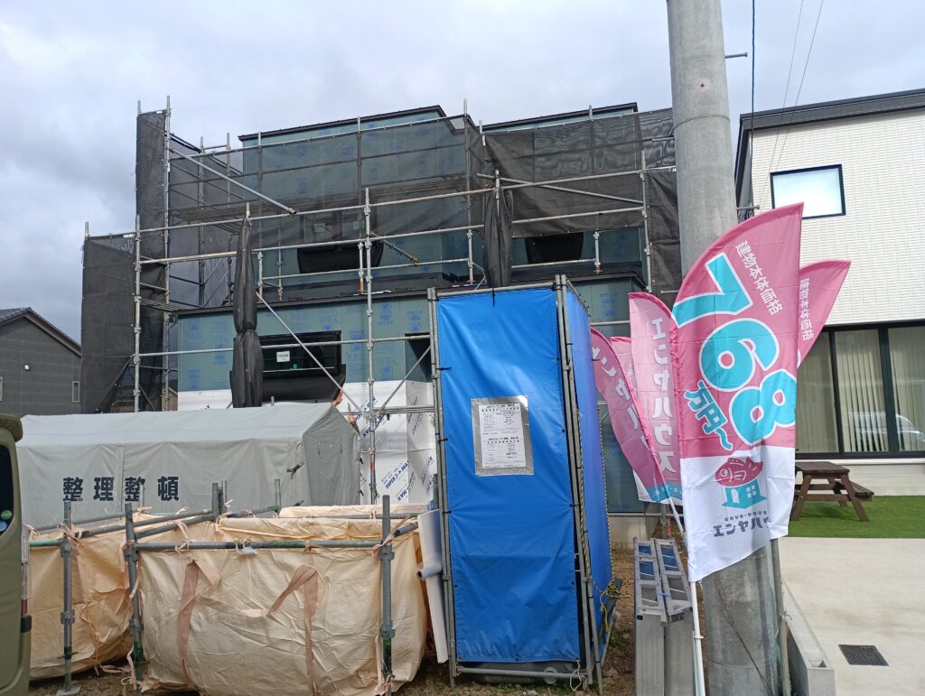 唐津市久里に、エンヤハウスの新しいモデルハウスを建設中!