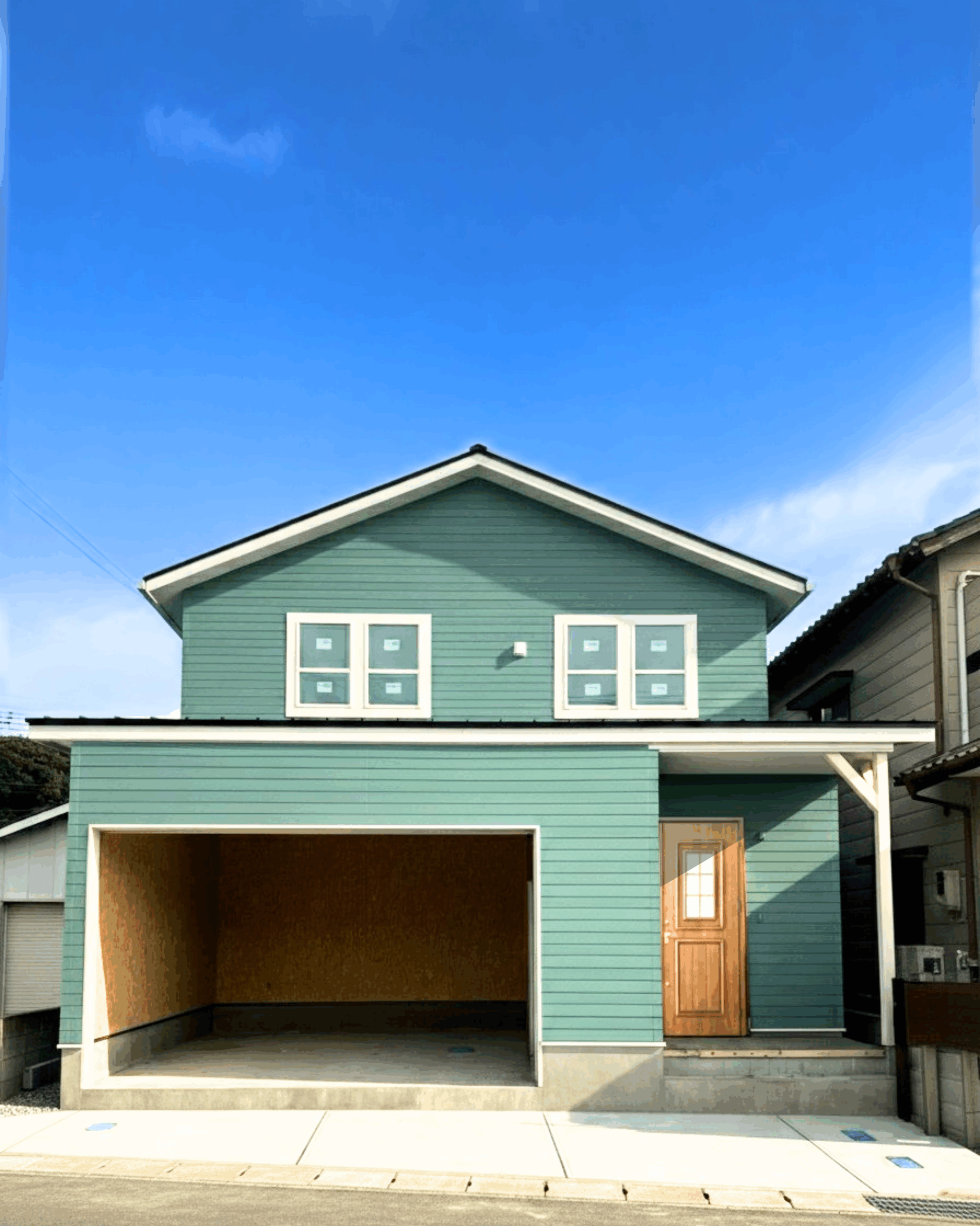 海辺のカフェを思わせるような、爽やかなグリーンの外観が印象的なY様邸。